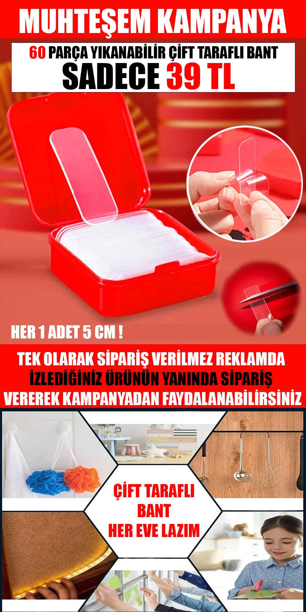 1 Adet ÇİFT TARAFLI BANT (60 PARÇA) -